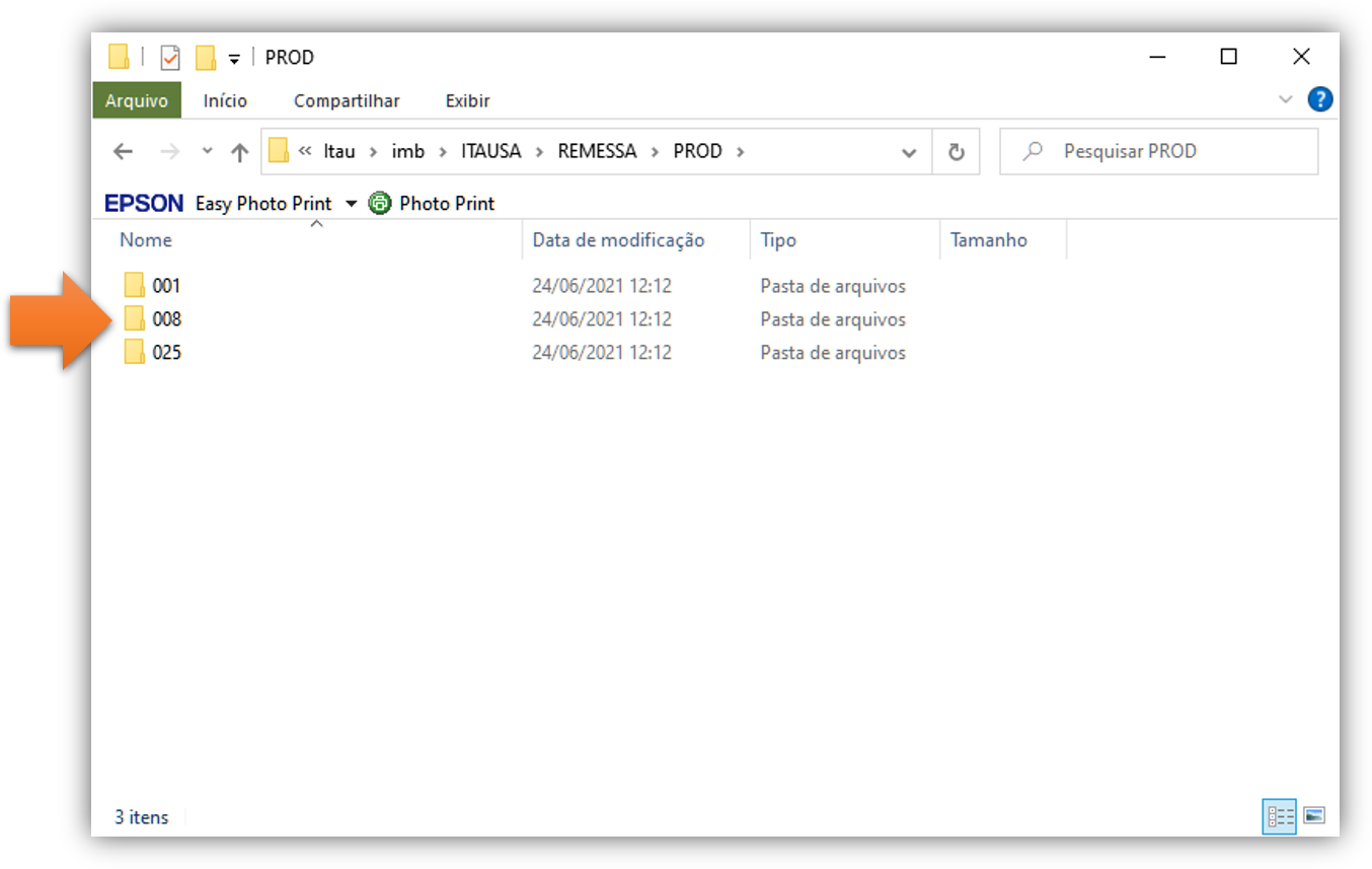 Observação: as pastas podem variar de acordo com o produto contratado com o Itaú.